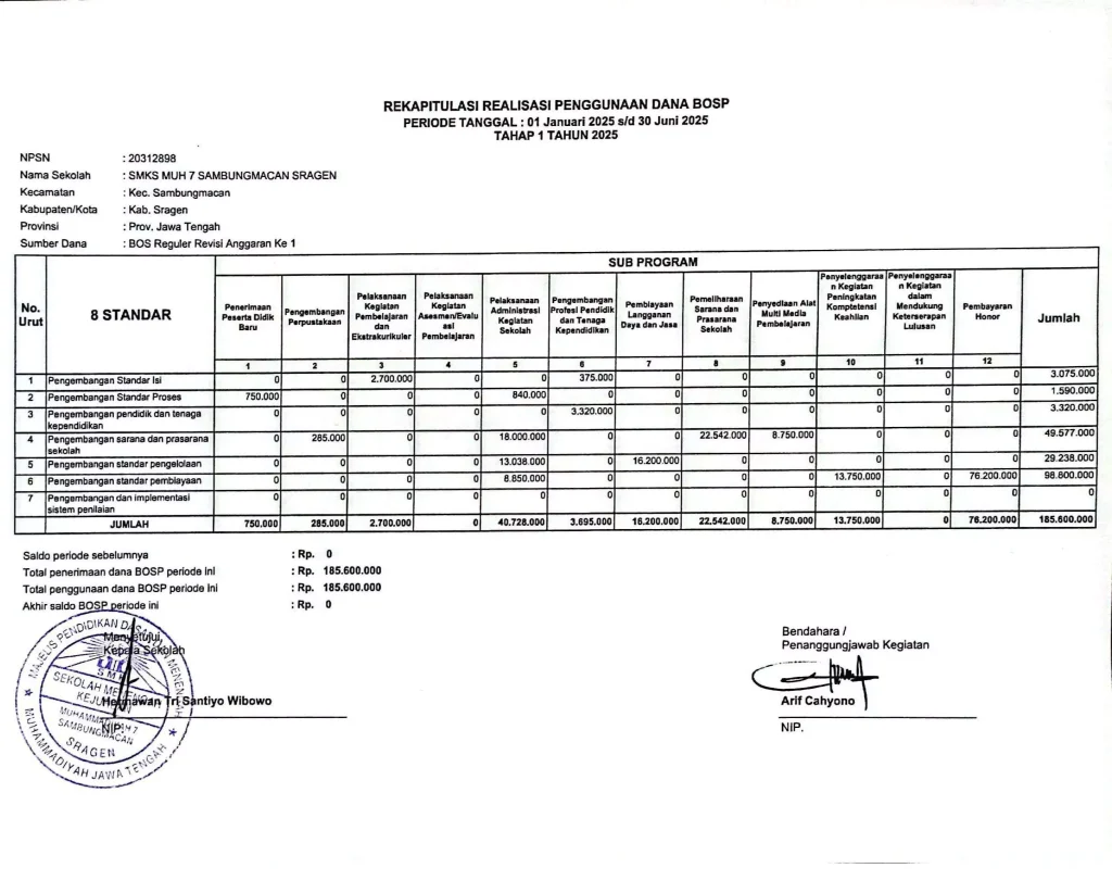 Laporan BOS Tahap 1 SMK Muhammadiyah 7 Sambungmacan